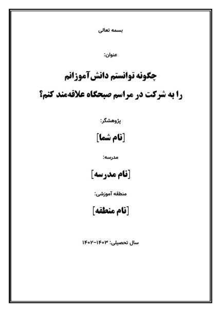 اقدام پژوهی با موضوع « ترغیب دانش آموزان به شرکت در مراسم صبحگاه »