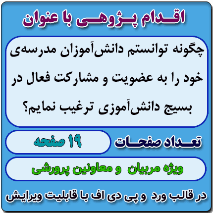 اقدام پژوهی با عنوان « چگونه توانستم دانش‌آموزان مدرسه‌ی خود را به عضویت و مشارکت فعال در بسیج دانش‌آموزی ترغیب نمایم؟ » در قالب ورد و پی دی اف با قابلیت ویرایش می باشد که در فروشگاه معاون پرورشی آماده گردیده است .