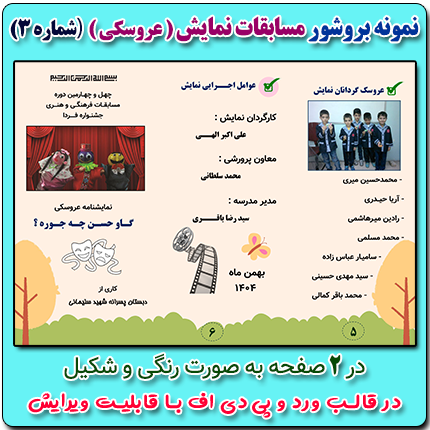 نمونه بروشور دو صفحه ای مسابقات نمایش ( عروسکی ) ( شماره 3) در قالب ورد