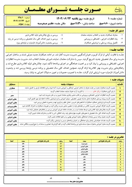 صورت جلسات شورای معلمان ( ابتدایی) 1405- 1404