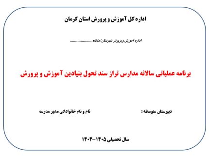 برنامه عملیاتی تراز سند تحول معاونت آموزش متوسطه استان کرمان 1405 – 1404