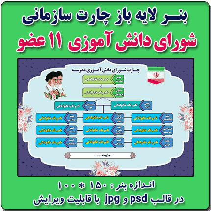 بنر لایه باز چارت سازمانی شورای دانش آموزی ( 11 عضو )