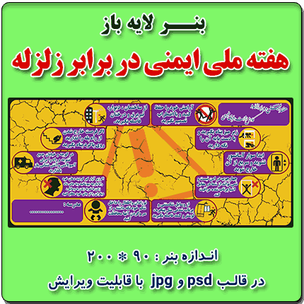 بنر لایه باز گرامیداشت هفته ملی ایمنی در برابر زلزله در دو فایل psd و jpg در فروشگاه معاون پرورشی طراحی گردید .