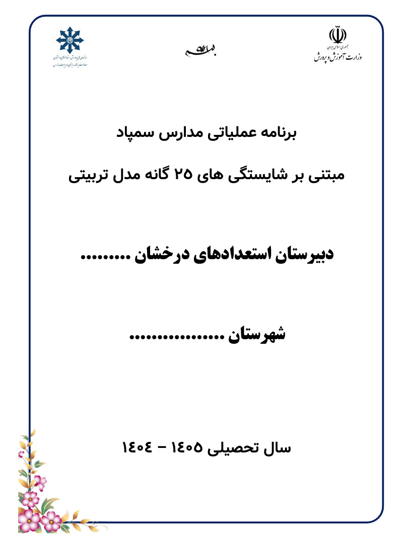 برنامه عملیاتی مبتنی بر شایستگی های 25 گانه مدل تربیتی مدارس تراز سمپاد 1405- 1404