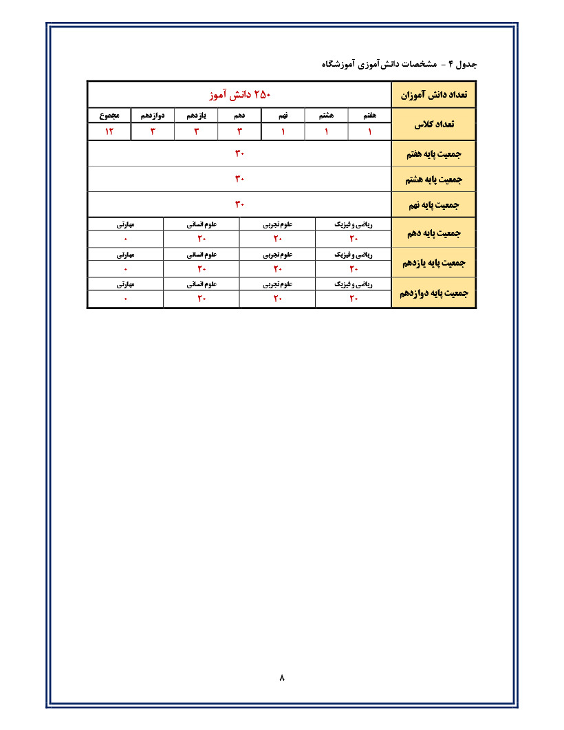 جدول – نمون برگ برنامه عملياتي مدارس استعدادهاي درخشان مبتنی بر شایستگی های گانه