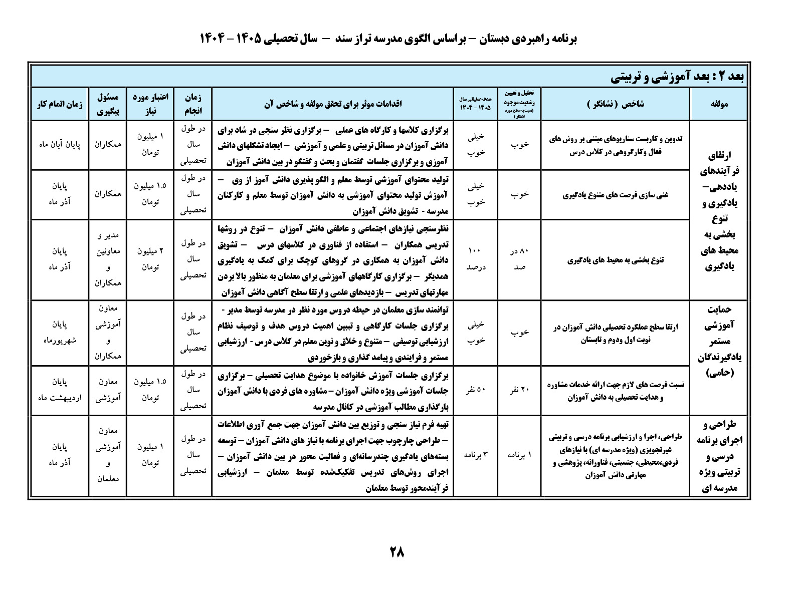 برنامه راهبردی براساس الگوی مدرسه تراز سند تحول بنیادین مقطع ابتدایی 1405 – 1404