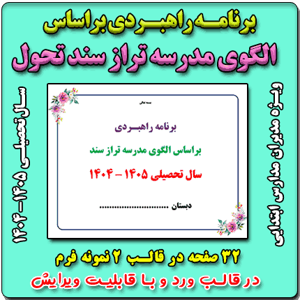قبل از خرید این محصول از شیوه نامه ارسالی به مدرسه اطمینان حاصل فرمایید که برنامه منطقه شما براساس همین الگو باشد تا فایل را بیهوده تهیه نکنید .