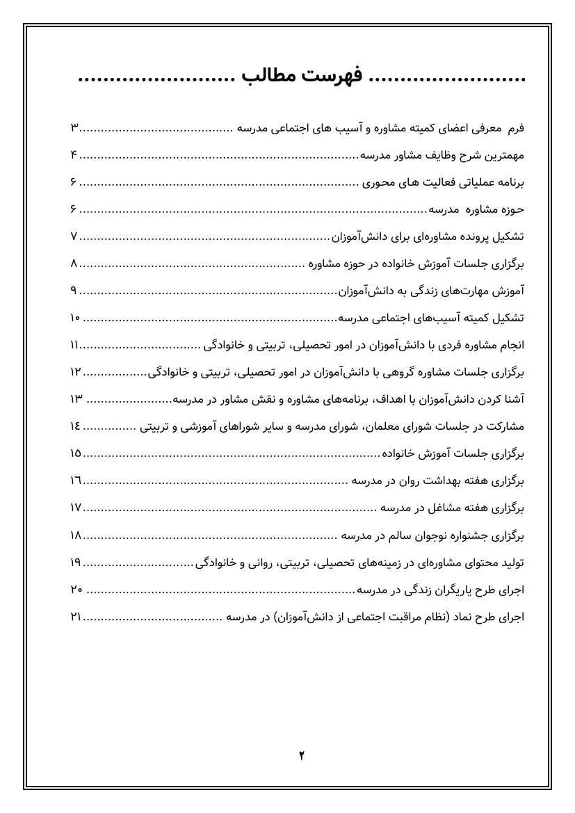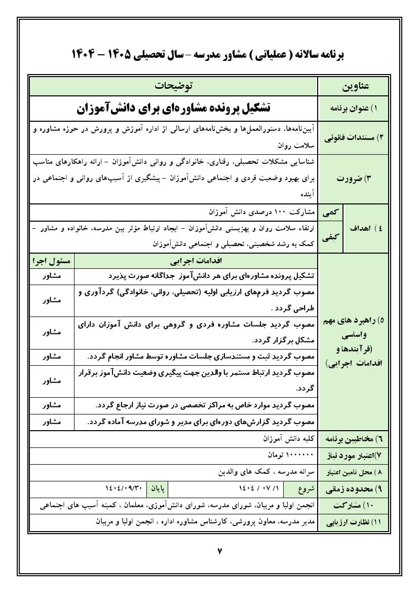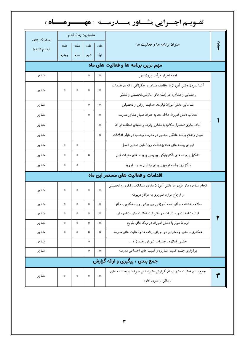 1 دیدگاه برای برنامه سالانه و تقویم اجرایی مشاور مدرسه – مقطع ابتدایی 1405- 1404