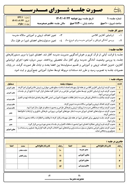 – 12 صورت جلسه انجمن اولیا بهمراه جدول زمانبندی
