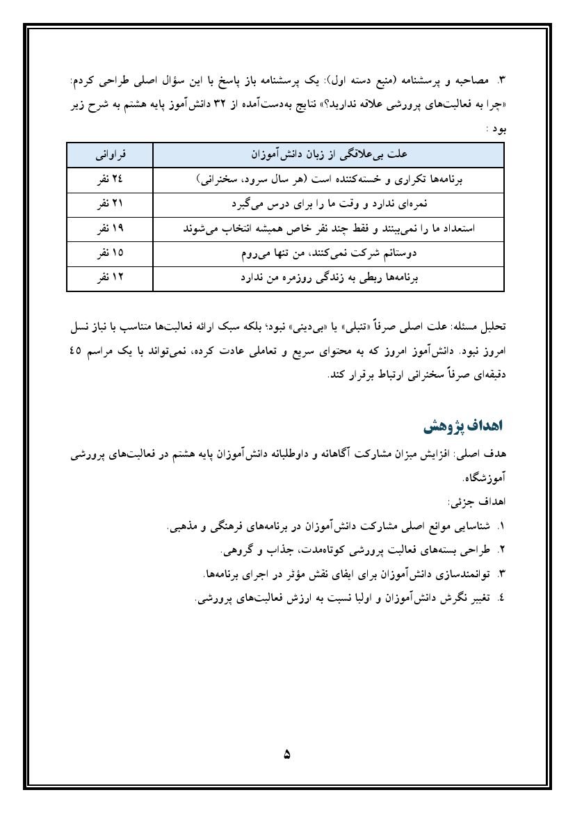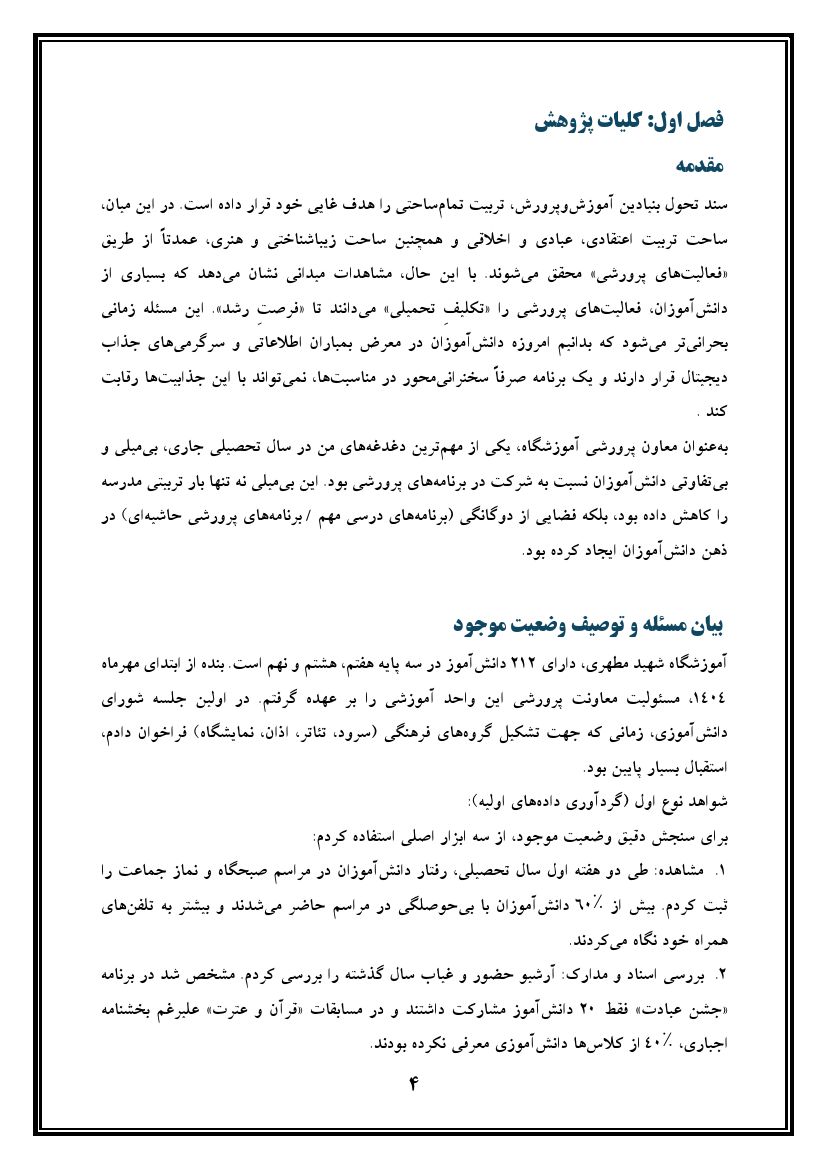اقدام پژوهی با موضوع « ترغیب دانش آموزان به فعالیت های پرورشی »