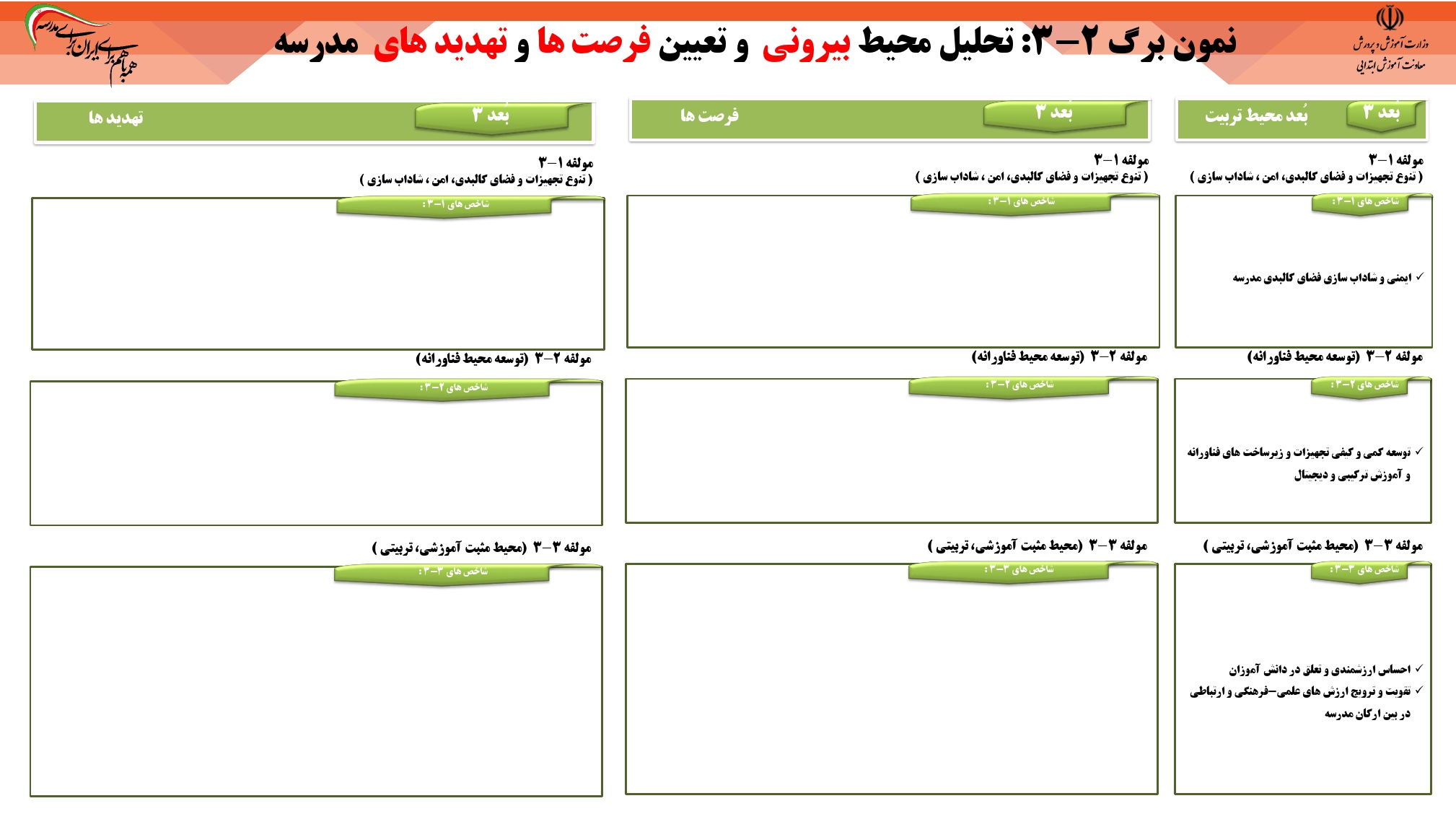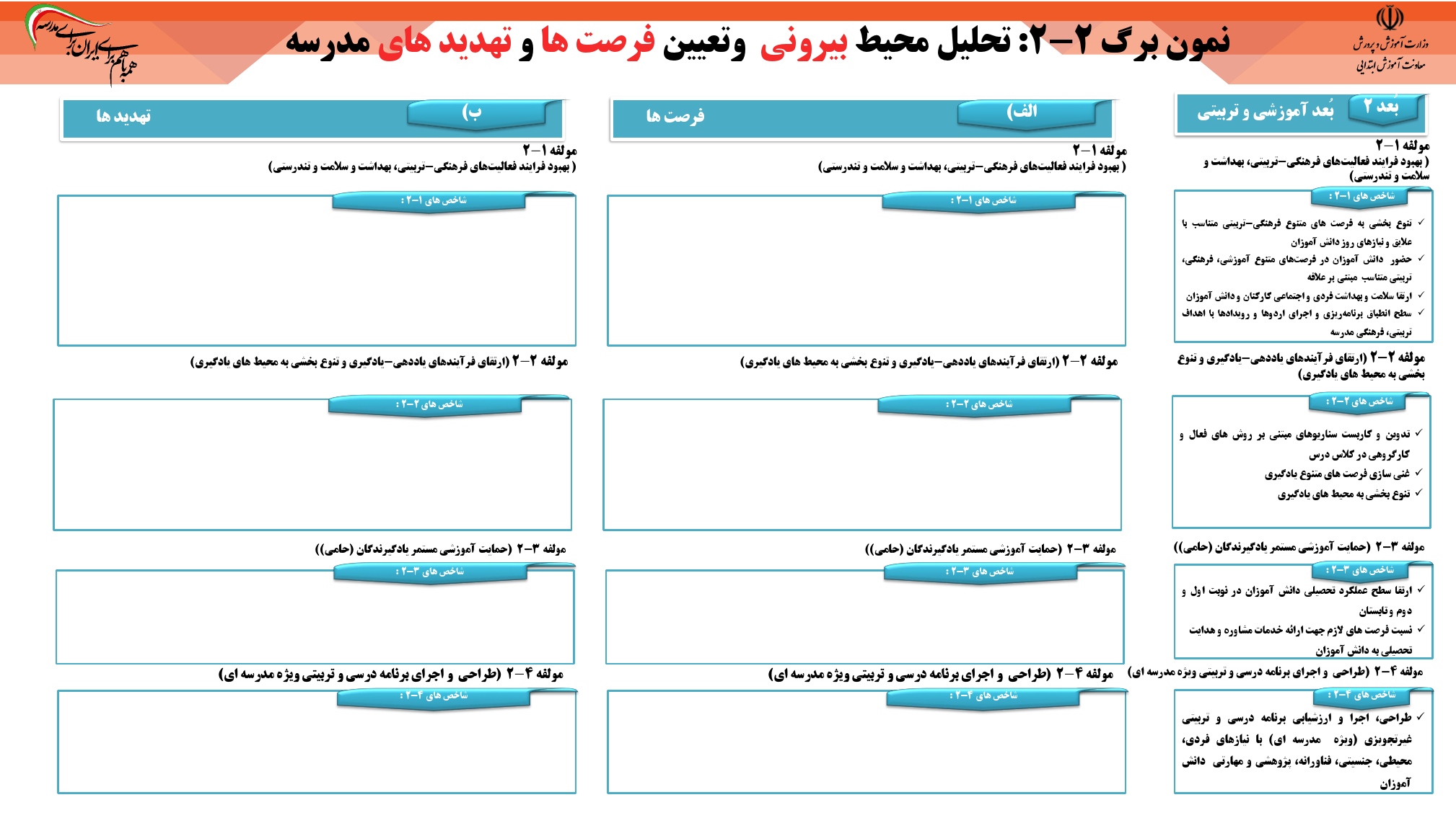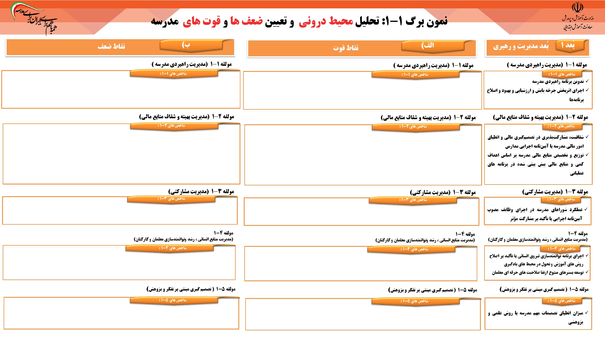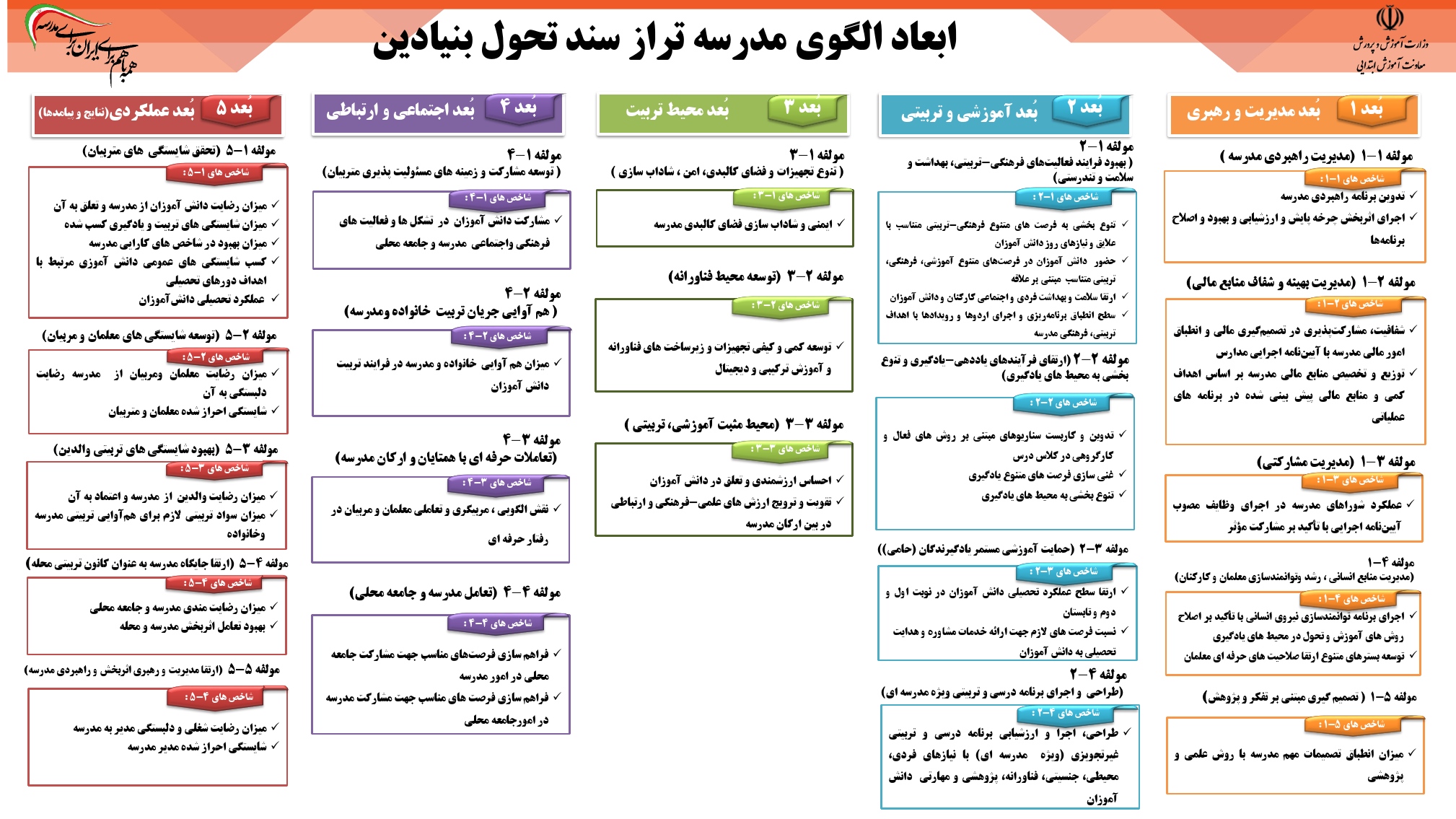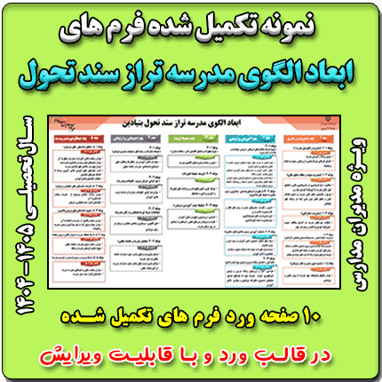 10 صفحه نمونه تکمیل شده ابعاد الگوی مدرسه تراز سند تحول – سال تحصیلی 1405 – 1404