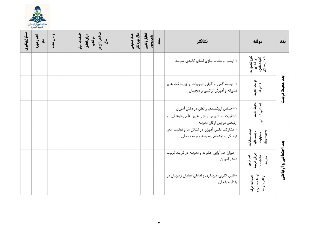 برنامه عملیاتی تراز سند تحول معاونت آموزش ابتدایی ناحیه دو شیراز 1405 – 1404