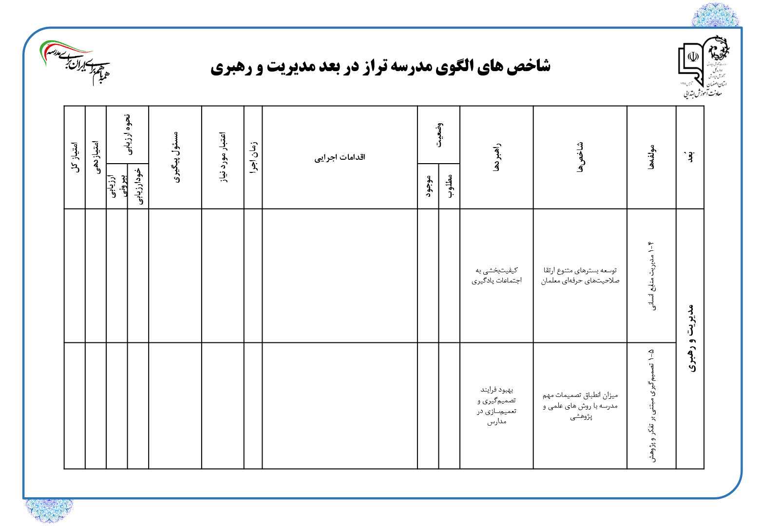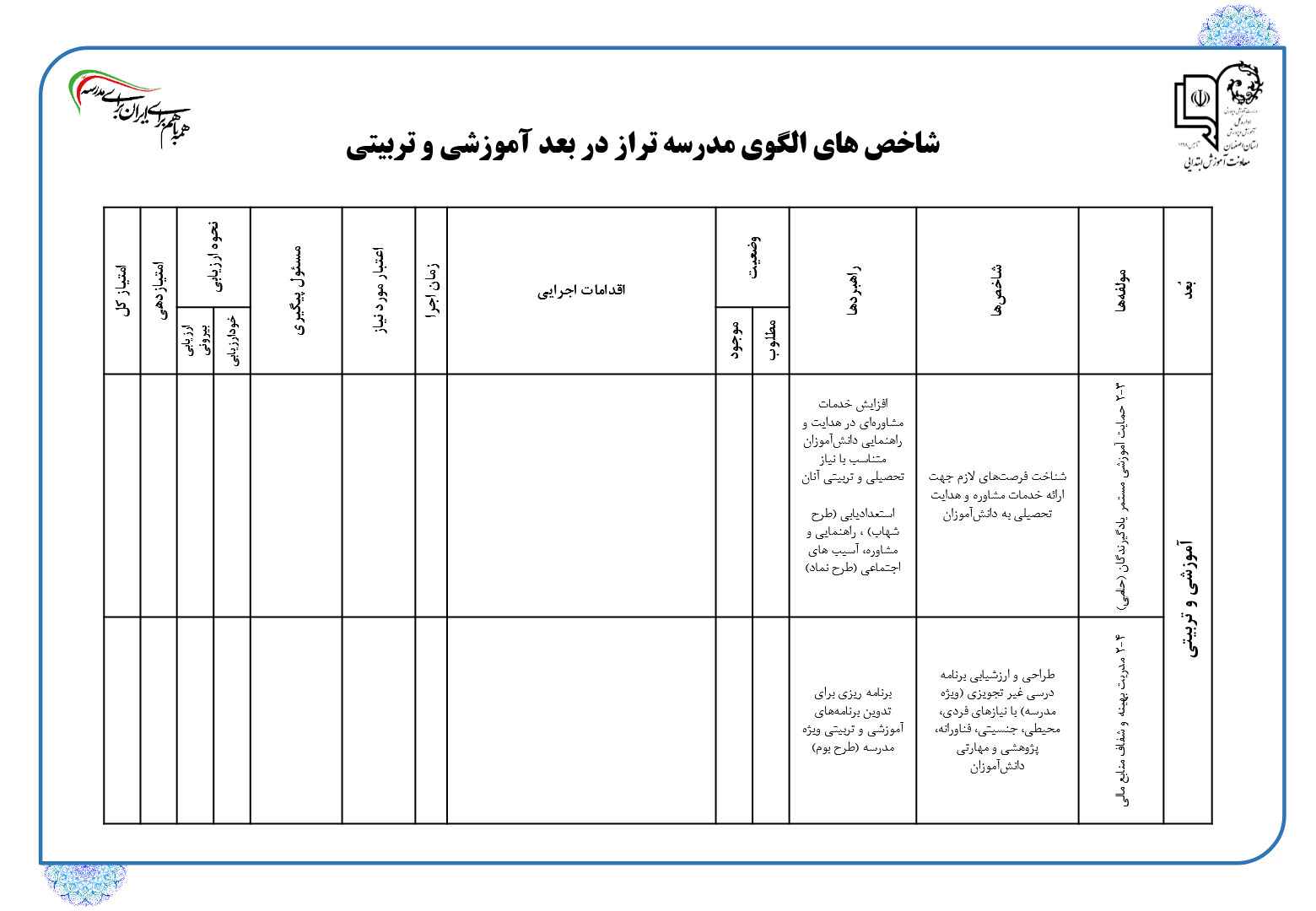 18 صفحه نمونه تکمیل شده فرم های برنامه عملیاتی فصل دوم تراز سند تحول معاونت آموزش ابتدایی استان اصفهان در قالب پاورپوینت و پی دی اف می باشد.